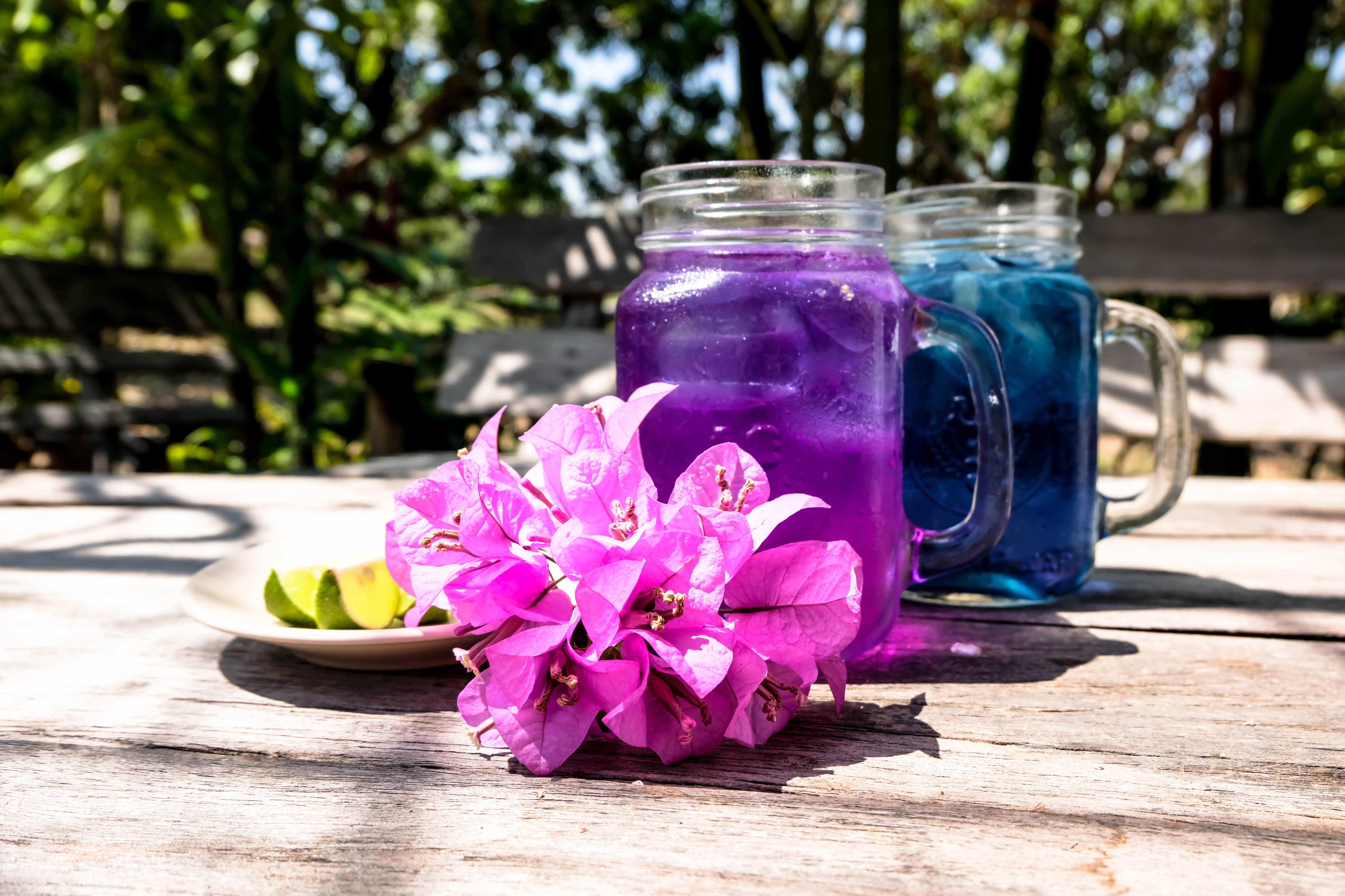 We started drinking it to refresh the thai hottest day, and for his abilities in changing his colour, it’s magic! Just add a little drop of lemon and from blue it becomes purple.